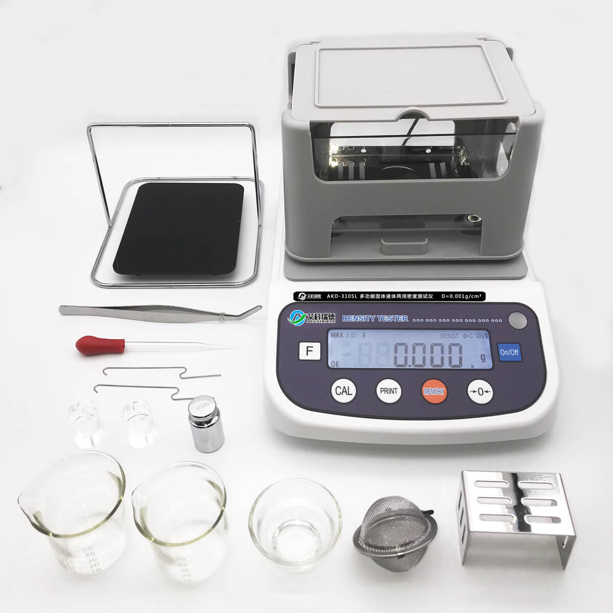 AKD-310SL多功能固体液体两用密度测试仪,适用于测量橡胶、塑料、塑料颗粒、电线电缆、轮胎、粉末冶金、精细陶瓷、玻璃工业、液体、化工溶液、添加助剂等新材料研究实验室等。